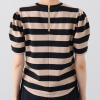 ブラックとブラウンの組み合わせが好きな私にはたまらないボーダーです。タックを入れたフェミニンなデザインは、甘すぎない大人かわいいを演出してくれます。ブラックのオールインワンに合わせてお友達と会ったらめちゃくちゃ褒められました。バルーンスカートやジーンズにもピッタリです。