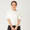 タックを入れたフェミニンなデザインの袖は、甘すぎない大人のかわいらしさを演出しつつ、二の腕の華奢見せ効果も期待できます。