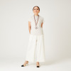 袖は肩先が隠れる程度の長さに設定することで、肩のラインが丸くなり女性らしい印象を与え、さらに、涼やかさを感じさせながらも、気になる二の腕がすっきりと見えるようにしています。