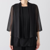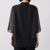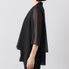 本体のアンダー身頃には、ソフトな風合いと軽く膨らみ感がある経二重素材を、袖とオーバー身頃には程良い透け感と落ち感があり、しなやかでドレープ性のあるシフォンジョーゼット素材を使用。