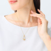 CZの輝きが胸元に向かって広がりを見せ、鏡面の地金がやさしく包み込むようなデザイン。