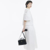 柔らかいレザーと硬質なデザインの対比がスタイリングを格上げ。持つだけで背筋が伸びそうな秀逸バッグ。