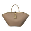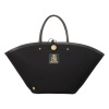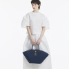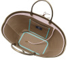 口元やハンドル、底部などには日本のタンナーから仕入れた当ブランドオリジナルの牛革シュリンク型押しを使用。