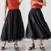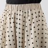 片側にフロッキー加工でドット柄を表現したチュール素材、もう片側に無地のツイル素材を使用したスカートです。