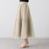ガーリーな印象のドット柄側、シンプルで使いやすい無地側、どちらでも着用できるリバーシブルスカート。