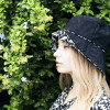 もう片面は当ブランドオリジナルデザインのプリント柄をほどこした、適度なシャリ感と美しいドレープ感が魅力の麻混素材を使用した、どちらの面も楽しめる、折り畳みが可能なリバーシブルハットです。