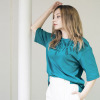 女性らしい立体的なパターンメイキングにより、ゆったりとしたシルエットで体型をカバーしながらも差別化されたTシャツです。
