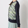 前身頃は当ブランドオリジナルデザインのプリント柄をほどこした適度に透け感がある涼やかな素材で切り替えました。