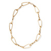 存在感が漂う幅のあるしずく型パーツと、ツイストしたインフィニティーパーツを交互に組んだ、デザイン性あふれる仕上がり。