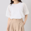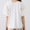 袖にフェザー感のある素材を使用してバルーンシルエットに仕立てた、トレンド感あふれるつくりが目を惹きます。