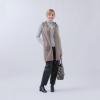 前立てから裾線にかけて、パネル状に編地を切り替えることですっきりとしておしゃれな印象に。