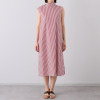 前身頃のタックで縦のラインを強調し、お腹周りをさりげなくカバーするすっきり見えデザイン。
