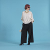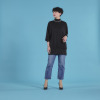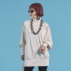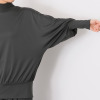 身頃はゆったりとしたシルエットでありながら、袖口の長めのリブにより、すっきりとした印象を与えます。