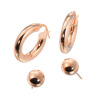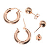 ローズゴールドカラーの地金を使用した、鏡面仕上げのフープピアスとラウンドピアスの2点セットです。