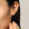 ぷっくりとしたフォルムが耳元で存在感を発揮。
