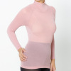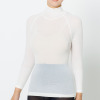 首にやさしく沿うハイネックタイプで暖かな着心地を実現。