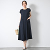 切り替えなどをあえて入れず、素材のウェイト感や落ち感を計算したバスト下から美しく広がるパターンを採用。