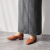 センターのアシンメトリーなデザインとサイドのカットラインが、履いた時に足をすっきりと美しく見せます。