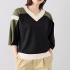 エムズ スタイル モイストダンボール カラーブロッキング Vネックプルオーバー