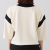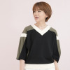 前後で表情が異なるデザイン。大胆なカラーブロッキングが印象的で、1枚で格好良く決まるプルオーバー。