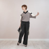 シャープに見えるVネックは前中心で重ねるデザインにして、上品さをプラス。