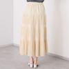 2〜4段目のティアード部分は、横段に無地の切り替えパーツをプリーツとプリーツの間に挟むことで、落ち着いた雰囲気に。