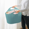 本品はお洒落なラタン風なデザインなので、ランドリーバスケットとしてだけではなく、リビングでお子さまのおもちゃ入れとしてや車の荷台で買い物用バスケット、アウトドアではテントや車の中での物入れとして使用可能。