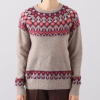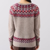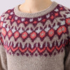 ウールニット大好きな60歳オーバーのおばあちゃんです。ノルディック柄セーターを探してました。ベビーアルパカなのも気に入りました。赤の柄が顔周りを明るくして、それでいて優しい感じでステキです。サイズは通常Lサイズですが、ゆったり着たいのでLLにしました。