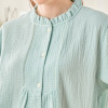 襟のフリルは首元への当たりが気になりにくい絶妙な高さに設定。