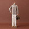 天然色の原毛を用いた糸を3本取りして、ローゲージニットに仕上げました。