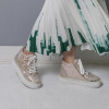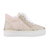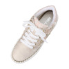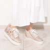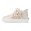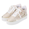 サイドに花モティーフをあしらった、華やかなデザインのレースアップスニーカーです。
