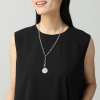 金具はチェーンのコマに引っ掛けられる仕様で、お洋服に合わせて、金具の位置を変えて表情の変化を楽しむことができます。
