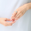 ブルートパーズ爽やかで素敵な色です。石が大きくてファッションのワンポイントになりますね。残念なのが、サイズが大きいのしか残ってなくて着けられる指が2本しかなくて、他の指に着けるとくるくる回ります。でも春から夏に活躍してくれそうな素敵な水色です。
