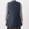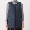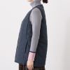 片側は微光沢のナイロンタフタを、もう片側にはマットな仕上げのポリエステルタフタを使用した、リバーシブル仕様のロングダウンベストです。