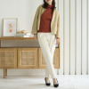 ウエストは総ゴムながら、本格的なパンツの仕様を取り入れているため、ウエストを見せた着こなしが決まり、トップスを選ばないのでコーディネイトの幅も広がります。