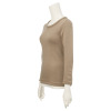 シンプルなクルーネックデザインながら、襟元には身生地と同素材でバインダー始末し、アウターライクな見た目を演出。
