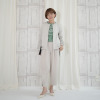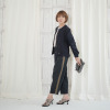 すっきりとしたラウンドネック(ノーカラー)が上品な印象を演出。