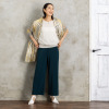 素材のドレープ感を最大限に生かした“ふわっ”と風を感じさせるワイドシルエット。