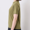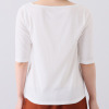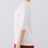 二の腕をカバーする五分袖Tシャツは、適度にフィットするシルエットが女性らしいスタイリングをアシスト。