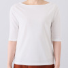 首元をきれいに魅せるボートネックを採用。