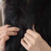SAGAラベル付きの上質感ある毛並みが装いを格上げ。通し穴&ホックを配し、安定感ある着け心地に。