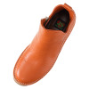 アッパーの前方部分にミシンステッチや切り返しを設けず、革本来の柔らかさを生かしたシンプルなデザインです。