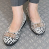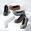 柔らかな羊革が足を包む、軽やかな一足。きらめくモティーフで、エレガントな装いを演出します。