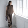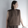 肩の切り替え線は、当ブランドオリジナルの薄い肩パットを巻き込んで縫製することで、肩のラインをシャープに見せるつくりに。