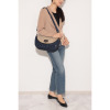 ショルダーバッグ使用時には開口部が折れて、メインファスナーからの荷物の出し入れが少し面倒なように感じますが、背面のファスナーからも中身が出し入れできるので便利。
