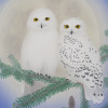 ふくろうは夫婦で仲睦まじい姿を表現し、松(トドマツ)は、一年中緑の葉をつけていて不老長寿の願いを込めて描いています。