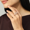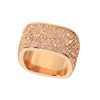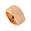 シルバーの11号が無くて13号も無くて、迷っているうちに15号もSOLDOUTになってしまいそうでしたので、ポチリしました。私は普段、左薬指は8号サイズなのですが、画面で観ました感じが大ぶりでしたので、右の人差し指指にと思い購入致しました。型もスクエアなので、右手の親指まで入ってしまいましたが、見栄えも良く太さも、型も大満足です。ピンクゴールドの方はその日は、全てSOLDOUTになっておりましたので購入出来ず、幅の細いピンクゴールドのコチラも15しか残っておらず、両方15号サイズを購入致しました。ピンクゴールドの方も細くてもキラキラ存在感が有り、もう付けた瞬間から手放したく有りません。また、放映される時が有るならば逆の色と幅の違うリングを頂きたいです。
