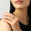 さりげないボリューム感とビジュウの輝きが好相性。カジュアルスタイルにおすすめのリング。