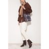 トレンドの長方形シルエットに、合成皮革のヘリ巻きをほどこしており、引き締まった印象とタータンチェックの魅力を引き立てます。