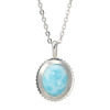 カリブ海を思わせるような美しいブルーのラリマールを、シンプルなシルバーの枠にセット。